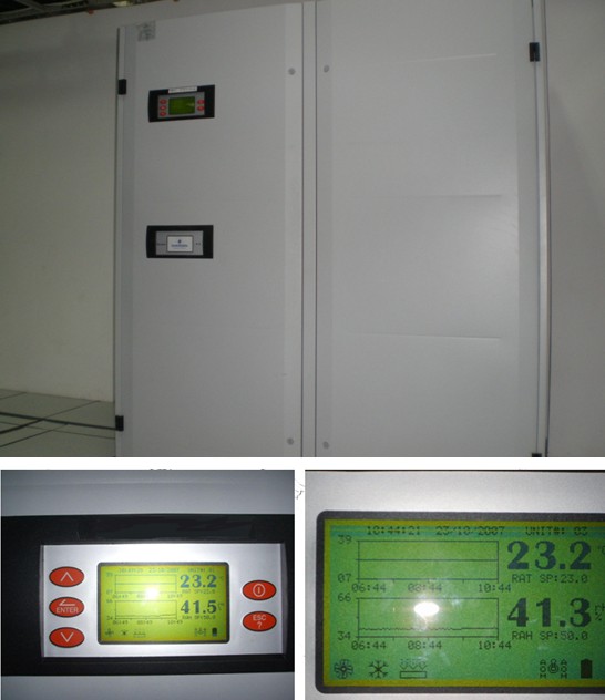 3楼机房采用爱默生20KW机房专用空调6台,配电室采用爱默生28KW机房空调2台。机房温度:18~26摄