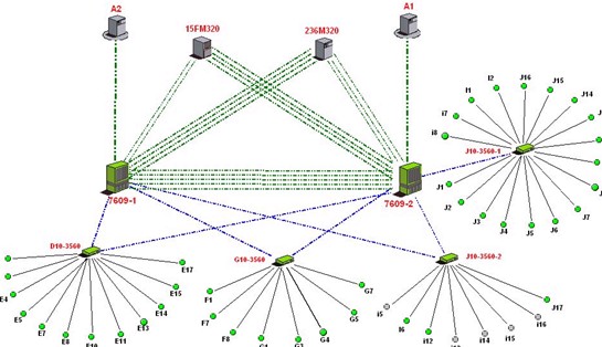 核心路由,出口双链路冗余。核心层可以设置统一的安全、接入策略,以保障机房网络系统的安全。